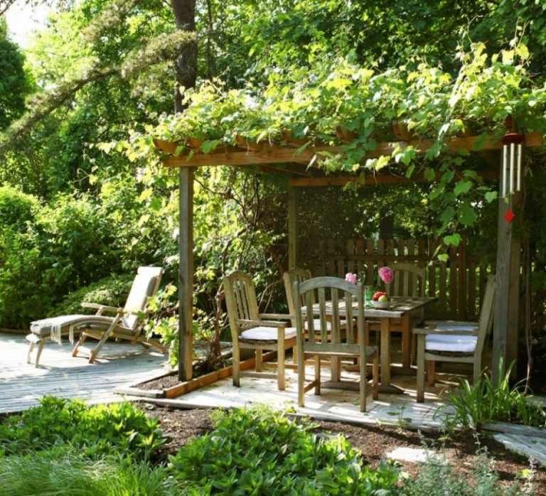Wein wächst an einem Pavilion entlang und hängt herunter